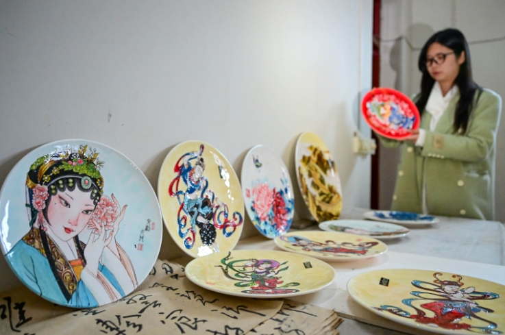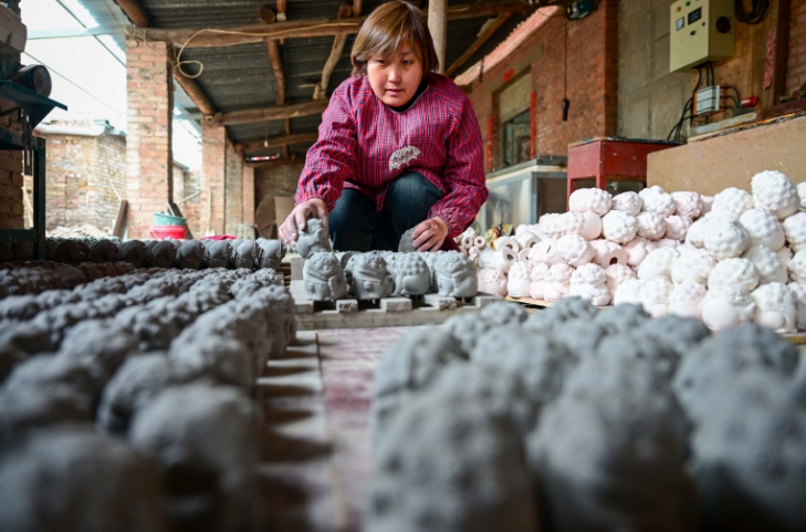 2025年3月11日,河南省洛阳市瀍河区白马寺镇金村的工艺品作坊内,民间艺人正专心致志地制作着唐三彩文创产品。近年来,当地政府积极推行“唐三彩+文旅+文创”的融合发展模式,有效带动了村民就业,所创作的唐三彩文创产品深受市场欢迎,畅销全国各地。李卫超摄(人民图片网)